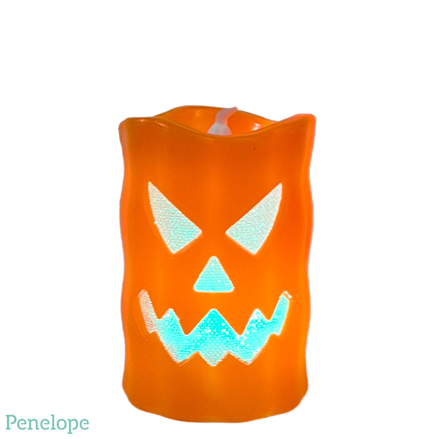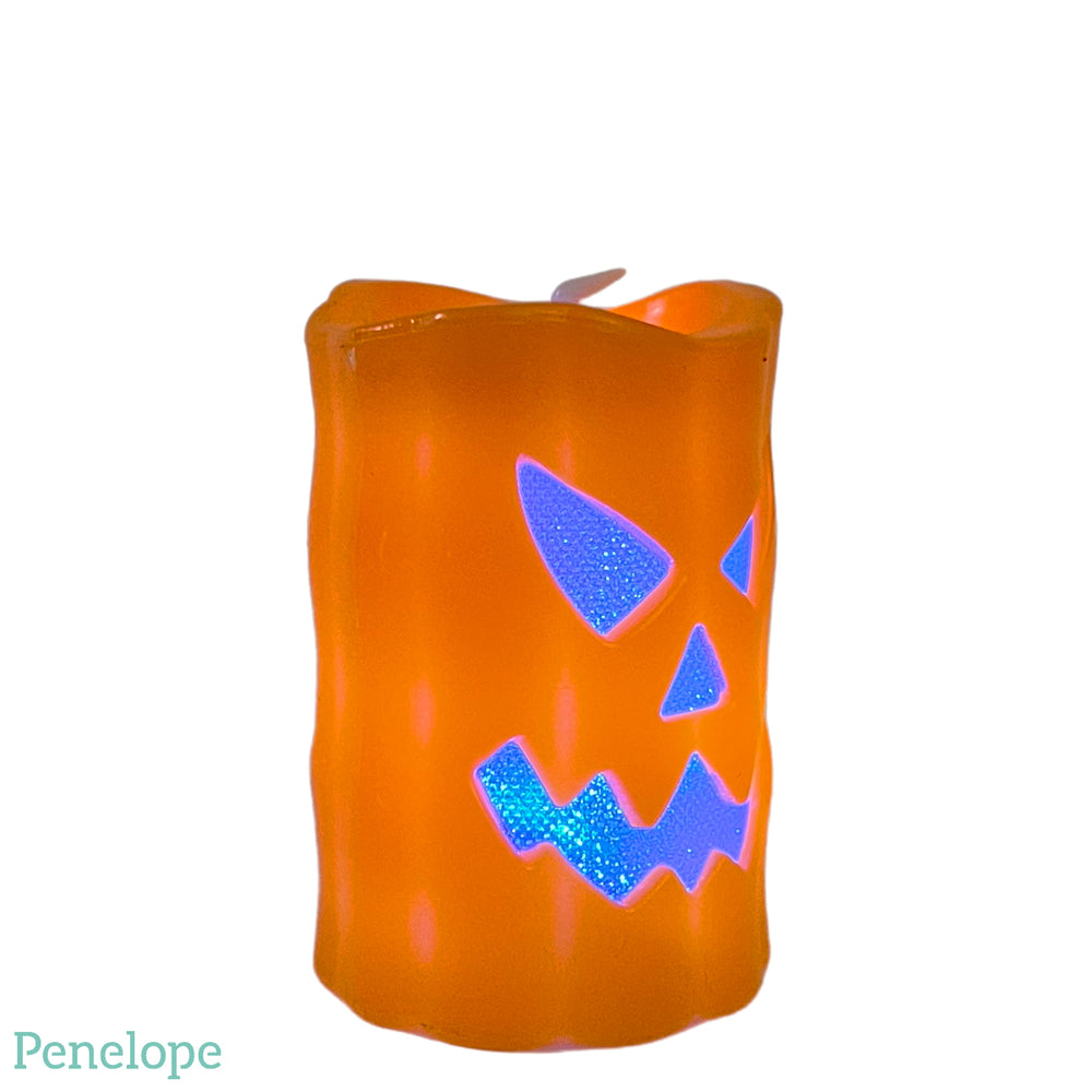 נר פלסטיק לד מחליף צבעים במראה דלעת מפחידה.