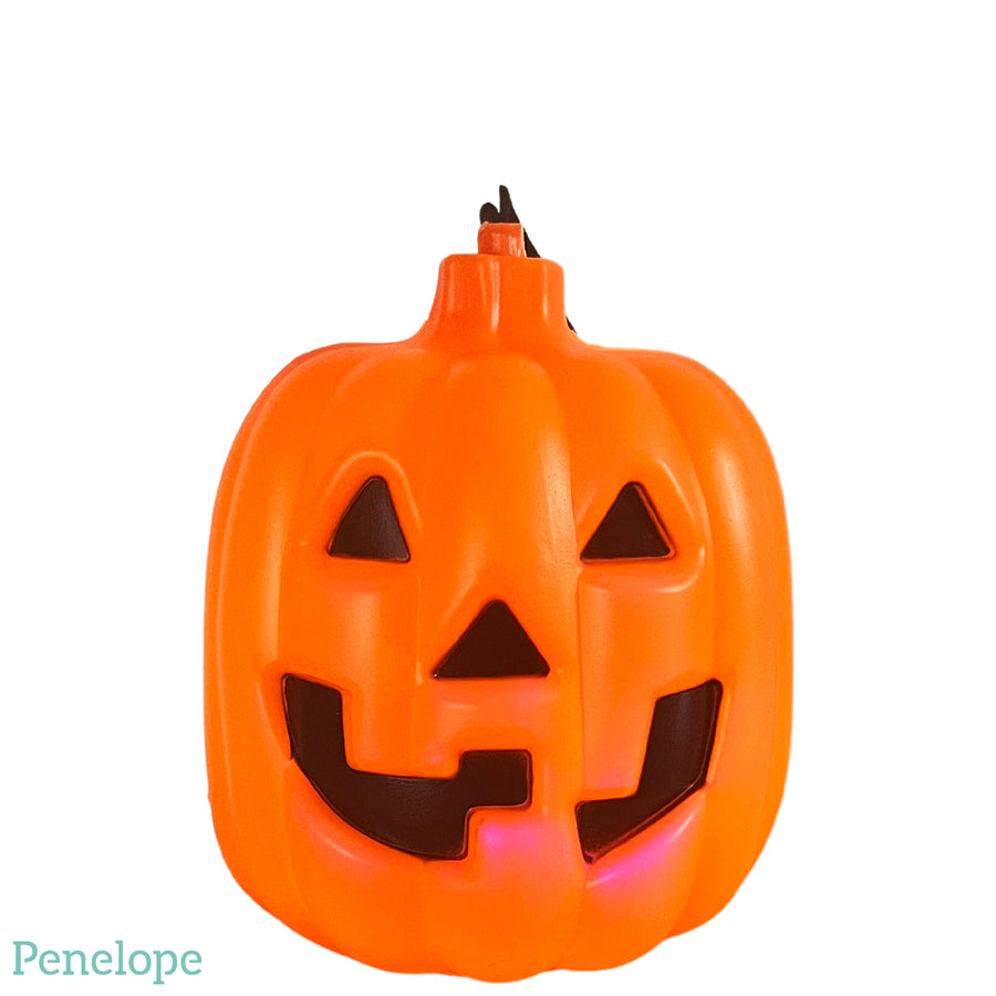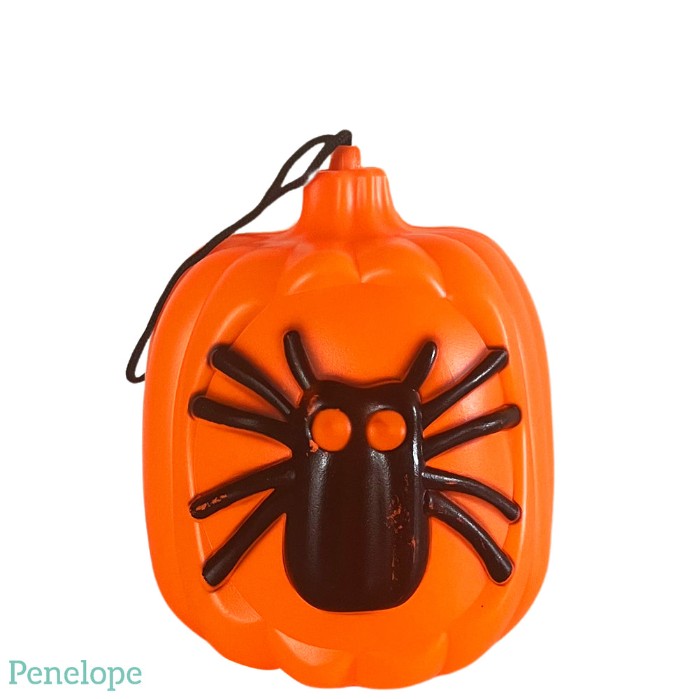 עששית פלסטיק לד כתומה בצד אחד דלעת מחייכת ומהצד השני עכביש שחור
