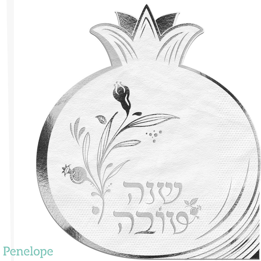 מפיות בצורת רימון שנה טובה כסף ולבן - 12 יחידות